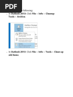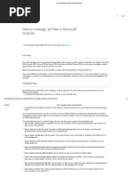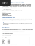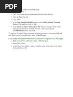 NOTE: Outlook automatically creates another archive file for items in the folder and location specified. To access items in your archive, do one of the following: If the archive Outlook Data File (.pst) is open in Outlook, the name of the archive will appear under All Folders in the Folder List on the Navigation Pane. If the archive Outlook Data File (.pst) is not open in Outlook: 1. 2. 3. Click the File tab. Click Open. Click Open Outlook Data File and browse to open the archive Outlook Data File (.pst).