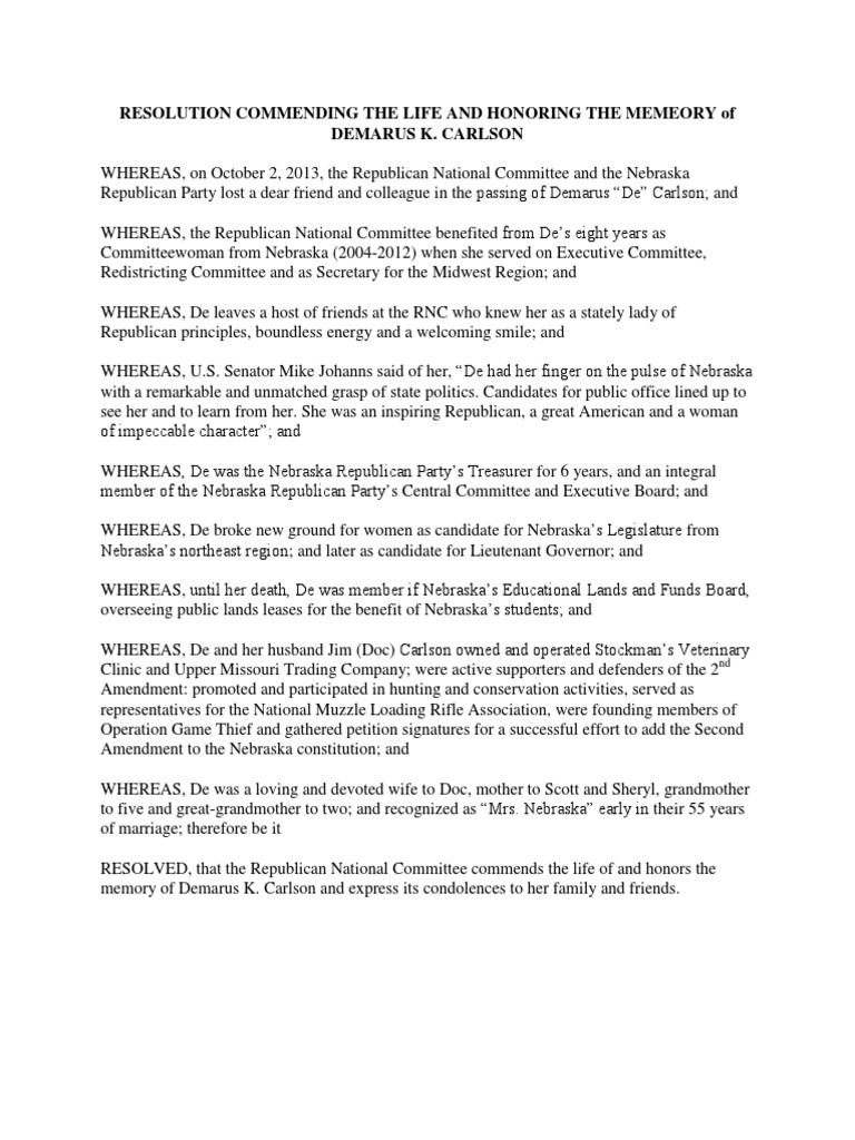 Resolution Commending The Life and Honoring The Memory of Demarus Carlson - FINAL