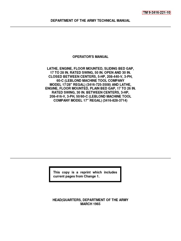 Army Lathe Operator's Manual