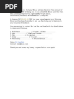 EVENTS MANAGER AND Payment Department, United Kingdom) Help Line +4470142445 The BBC Company Plc United Kingdom E-mail: bbconline1@[Link] 1 Name .. 2 Address: . 3. Country/State.. 4. Mobile No: .. 5. Sex........................................................ 6. Age....................................................... 7. Occupation............................................ 8. Email... 9 Your Full Name(s) . 10 Your Bank Name. 11 Names on Account 12 Account Number: .. 13 Bank Address.