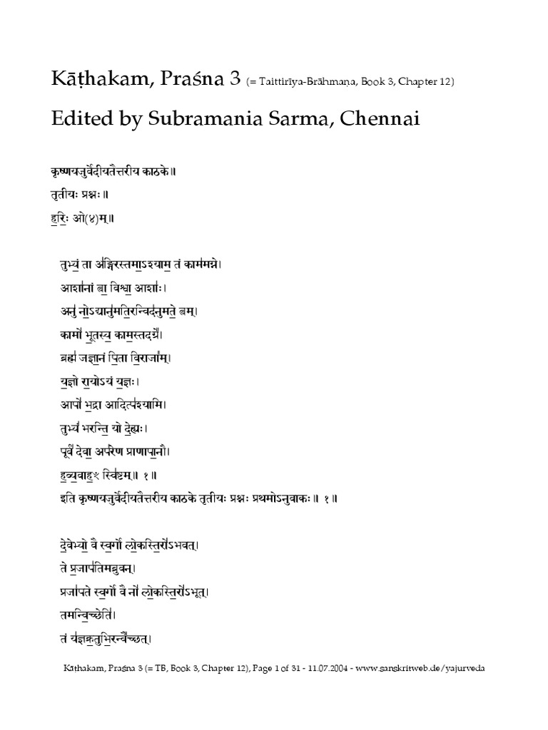 Klhakam, Prasna 3 (= TB, Book 3, Chapter 12), Page 2 of 31 - 11.07.2004 - www.sanskritweb.de/yajurveda