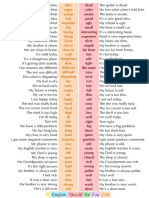 Sometimes I ride my bike to school. Everyone arrived early. David arrived late. Its snowing again. The mother bird started to build her nest yesterday. She is continuing to build it today. She will nish it tomorrow. Johns shoes were too big for him last year. They t him this year. They will be too small for him next year. It rained last night. The weather is ne this morning.