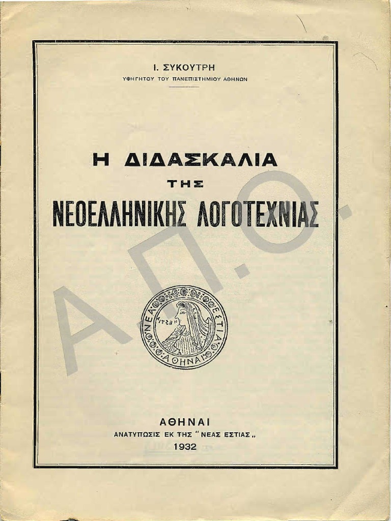 Ιωάννης Συκουτρής: Η διδασκαλία της Νεοελληνικής λογοτεχνίας (1932)