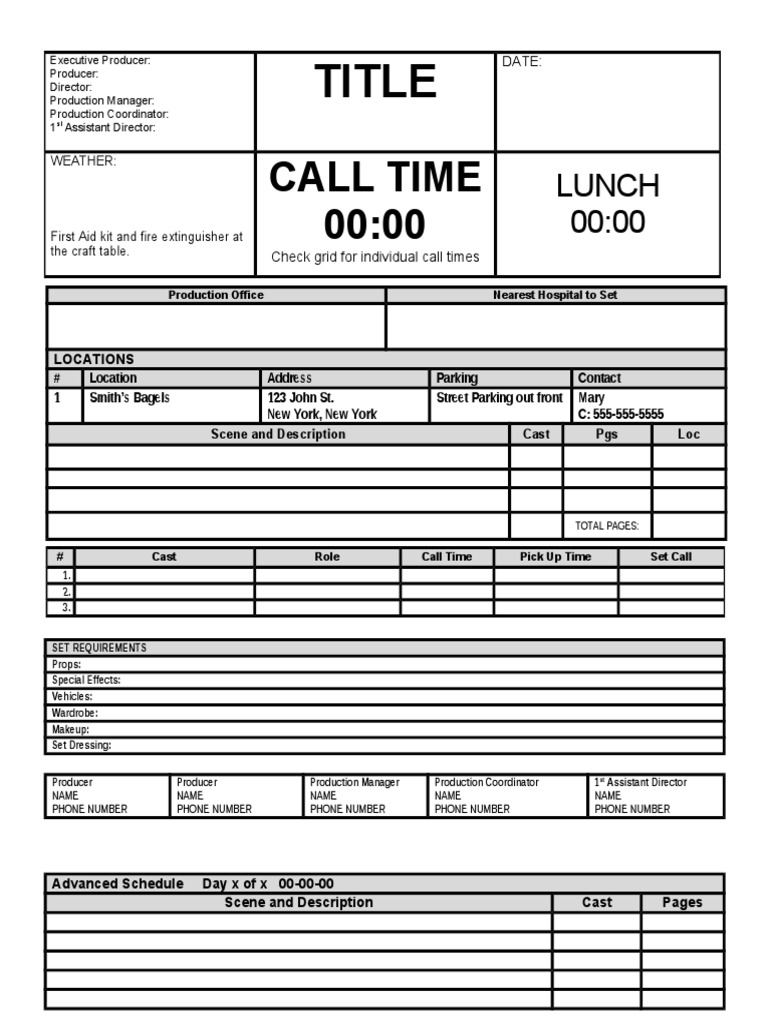 Executive Producer: Producer: Director: Production Manager: Production Coordinator: 1st Assistant Director: