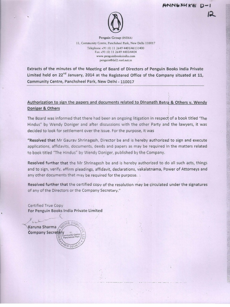 Saket District Court Case Against Wendy Doniger - Setlement