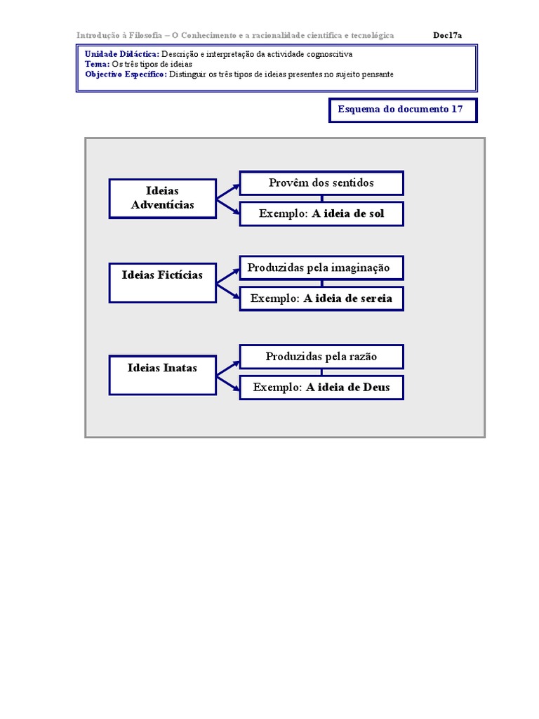 de ideias Objectivo Específico: Distinguir os três tipos de ideias presentes no sujeito pensante
