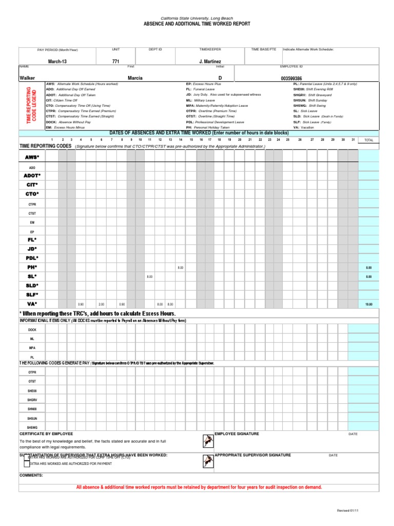 California State University, Long Beach ABSENCE AND ADDITIONAL TIME WORKED REPORT