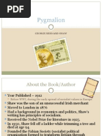 Several ideas in Pygmalion (such as Higgins socialistic beliefs) have direct parallels to Shaws personal history. Ask students to create a timeline based on George Bernard Shaws life and career. The information can be found in many British Literature textbooks or in a print or online encyclopedia. Timelines can be handdrawn, word-processed, or digitally produced. Make sure to ask students to leave room to add information, because during the reading of the text, they can make connections between the play and Shaws life.