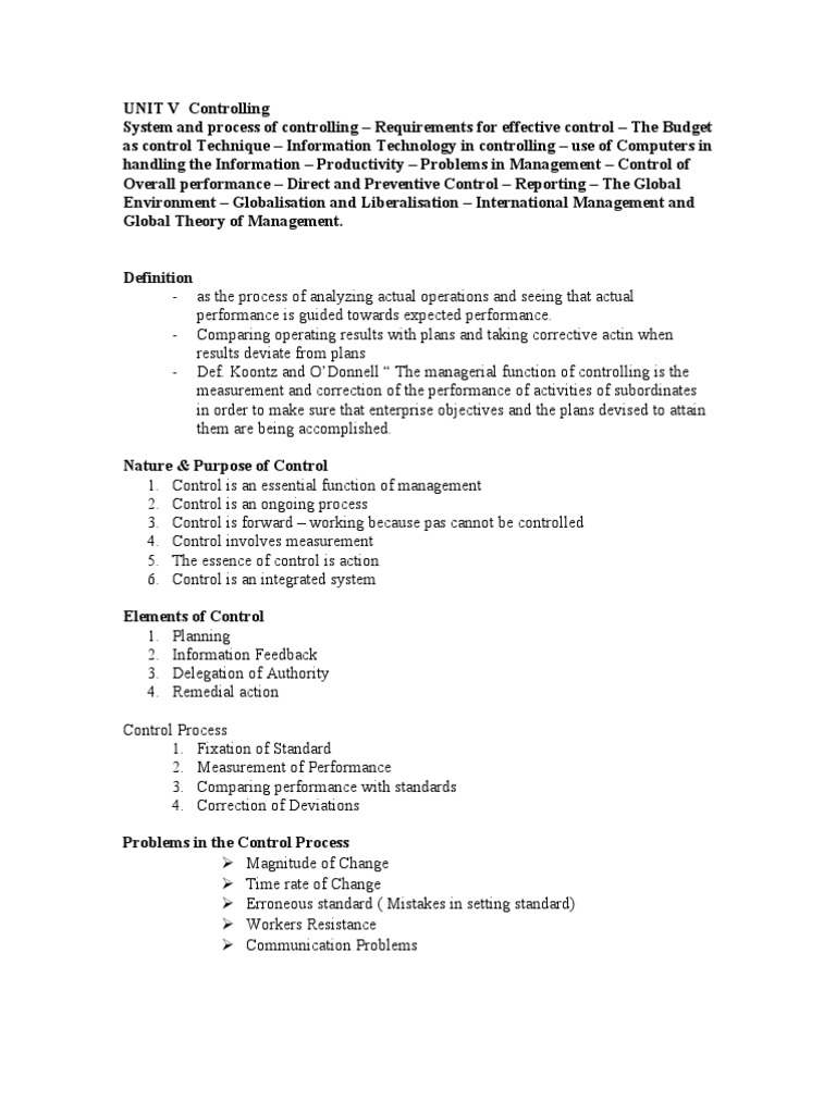 - Def. Koontz and O’Donnell “ The managerial function of controlling is the