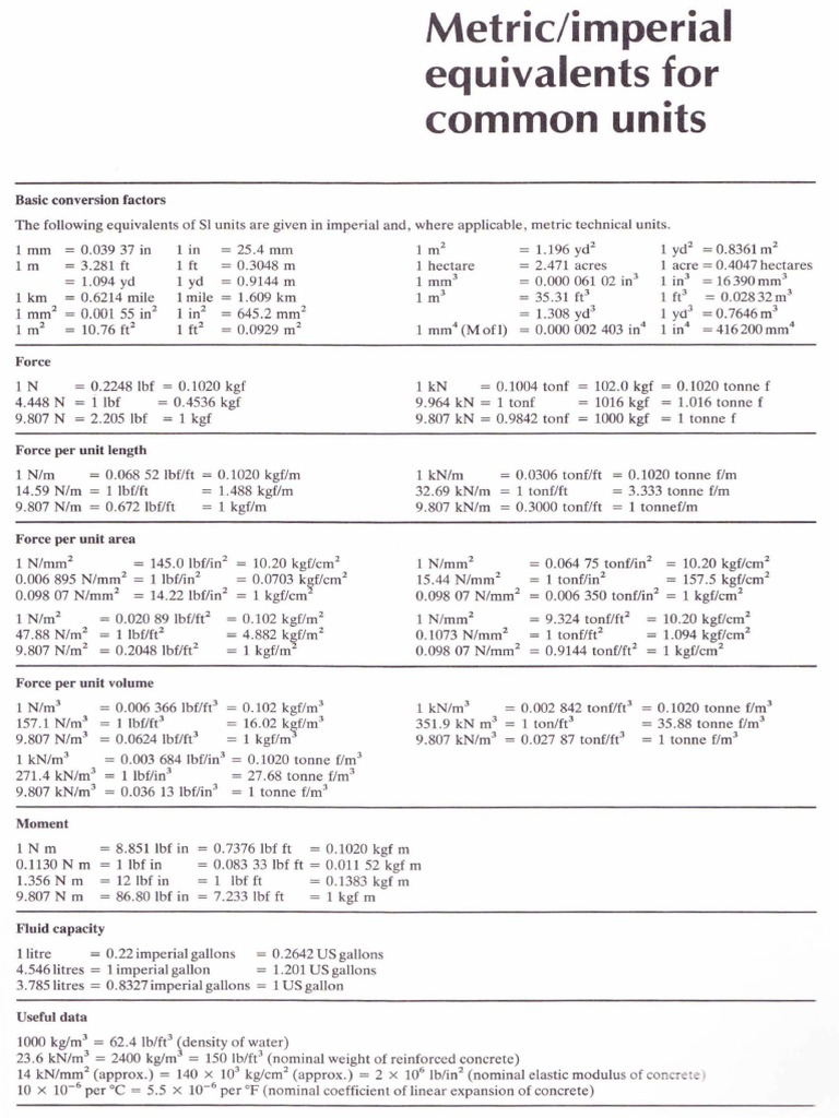The following equivalents of Sl units are given in imperial and , where applicable , metric technical units.