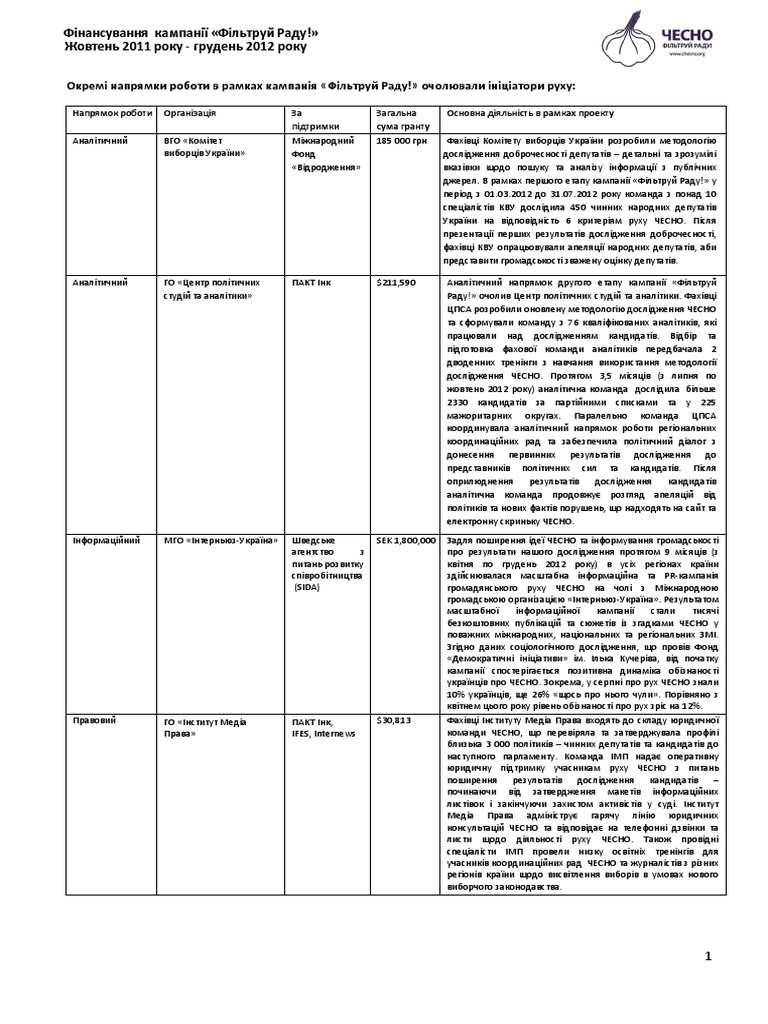 Фінансування кампанії «Фільтруй Раду