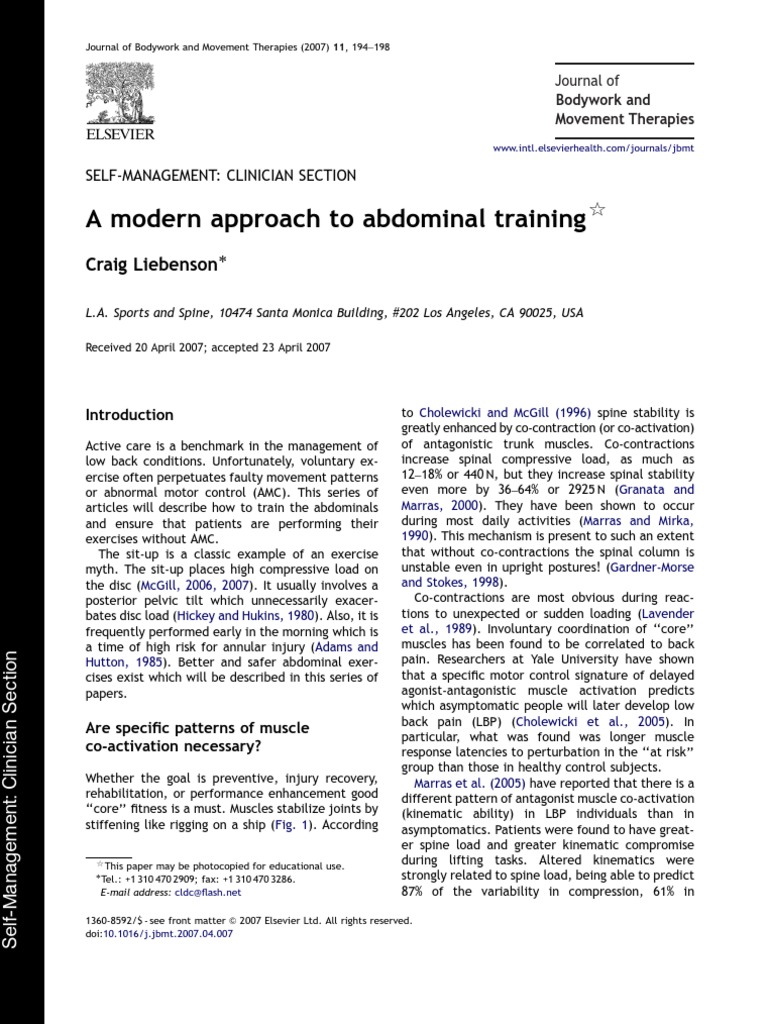198 two articles in this series will review more detail about the basics of assessment and training of the abdominal wall. C. Liebenson