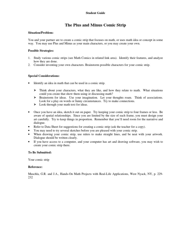 1. Study various comic strips (see Math Comics in related link area). Identify their features, and analyze