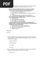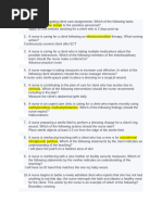 prostate. Difficulty in starting the urinary stream is a common symptom, along with dribbling, hesitancy and urinary retention. 10. A = There are many mechanisms of action for chemotherapeutic agents, but most affect the rapidly dividing cells-both cancerous and noncancerous. Cancer cells are characterized by rapid cell division. Chemotherapy slows cell division 11. B = the nurse should notify the anesthesiologist because a serum potassium level of 5.8 mEq/L places the client at risk for dysrhythmias when under general anesthesia. 12. A = It is appropriate for an unlicensed assistant to mark the time of measurement and fluid level in the collection container. 13. D = Nausea and gastrointestinal upset is a common but usually temporary side effects of Paroxetine (Paxil). Therefore, the nurse would instruct the client to take the medication with food to minimize nausea and stomach upset. 14. B Vertigo is the most frequent complication of stapedectomy. The patient should move slowly to avoid triggering or worsening vertigo and should ask for assistance with ambulation. Ringing in the ears rarely follows this surgery and should be reported to the doctor if it does. Hearing typically decreases after surrey bc of ear packing and tissue swelling, but commonly returns over the next 2-6 weeks. Usually, post-op drainage and pain are minimal Excessive drainage should be reported. 15. D Complaints of a sudden burst of black spots or floaters indicates that bleeding has occurred as a result of the detachment. Options A, B, and C are not signs of bleeding. 16. B Treatment for a contusion begins at the time of injury. Ice is applied immediately. The client then should be seen by a physician and receive a thorough eye examination to rule out the presence of other eye injuries. 17. B - If the laceration is the result of a penetrating injury, an object may be noted protruding from the eye. This object must never be removed except by the ophthalmologist because it may be holding ocular structures in place. Application of an eye patch or irrigation of the eye may disrupt the foreign body and cause further tearing of the cornea.
