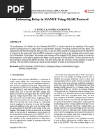 transmission failures may cause loss of Hello synchronism and thus take away the ability to track neighborhood changes, the following additional mechanisms include and check sequence numbers in order to detect (and eventually correct) such gaps. Differential Hellos use a proactive synchronism recovery mechanism, while Incremental Hellos make the receiver responsible for synchronism management. Both mechanisms can be applied to any conguration discussed in this paper. Our simulations (see Appendix for more details on the simulation environment) show that, in various scenarios of mobility and network size, these Hello Redundancy Reduction mechanisms save less than 2% of the total control trafc. This is not surprising, as in fact the fraction of control trafc due to Hello messages is in general rather small (about 15% in 20-nodes, 5 m/s networks; less than 3% in 50-nodes, 15 m/s networks). Information Determining Relays. MPR computation can be based on information contained in (i) Hellos originated by neighbor routers, or (ii) LSAs originated by neighbor routers. Both methods can be applied to any conguration discussed in this paper. However, the relay selection and update speed varies depending on this choice, as LSAs are usually generated less frequently than Hellos. Therefore, basing MPR computation on information contained in LSAs slows relays adjustements to topology changes compared to basing MPR computation on information contained in Hellos. The same reactivity could theoretically be achieved if LSA intervals were shortened to the value of HelloInterval, but such increase in LSA frequency would yield drastically more control overhead network-wide. Relay Population. MPR selection identies a set of relays in N (the set of neighbors), that covers entirely N 2, the set of neighbors two hops away. However, N and N 2 are populated differently, depending on whether one considers covering (i) adjacent neighbors only, or (ii) both adjacent and 2-WAY neighbors. As shown in Section 4, it is preferable to use both adjacent and 2-WAY neighbors to populate N and N 2. Implicit Acknowledgement. Contrary to standard OSPF policy, a ooded packet may be forwarded over the same MANET interface it was received on. This forwarded packet can thus be used as implicit acknowledgement, and eliminate the need for explicit acknowledging. The use of implicit acknowledgement can reduce the number of transmissions due to control trafc. This can be applied to any conguration discussed in this paper. Multicasting of Control Trafc. Instead of unicast (this is standard OSPF policy) protocol packets can be multicast. The use of multicast can reduce the number of