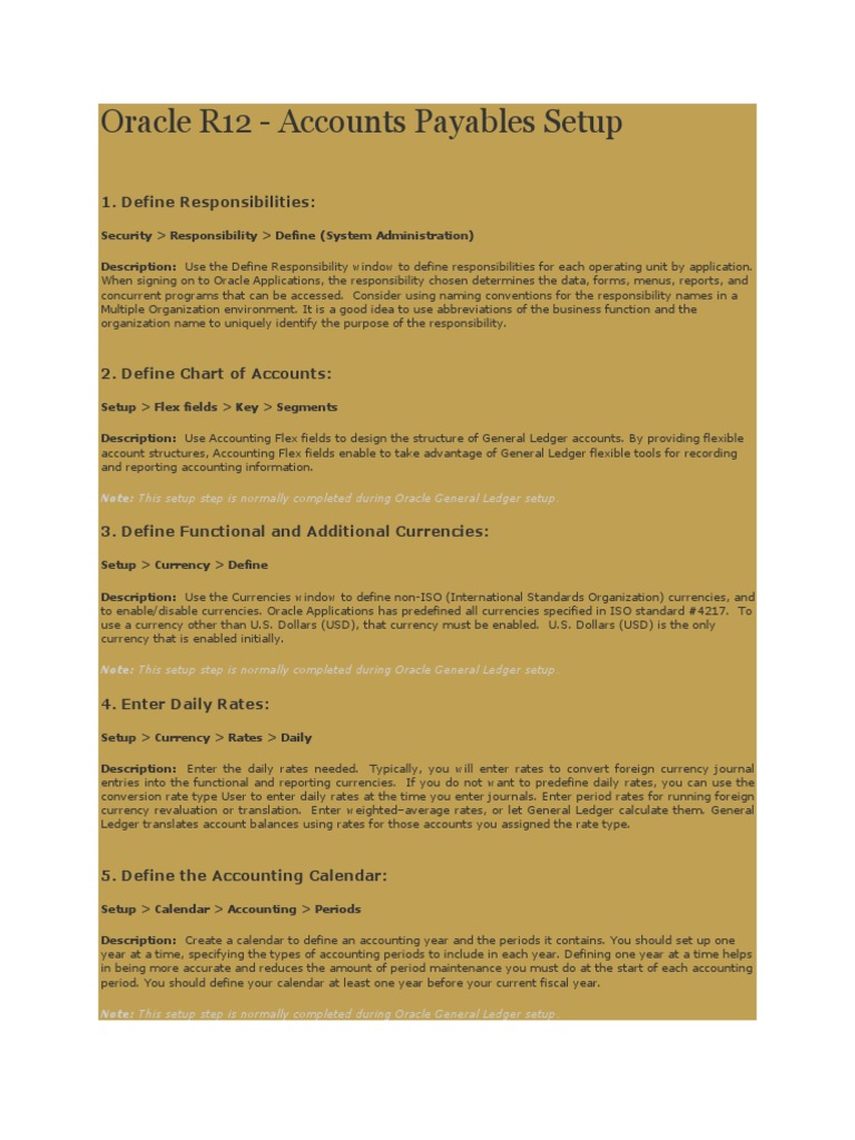 Oracle R12 - Accounts Payables Setup