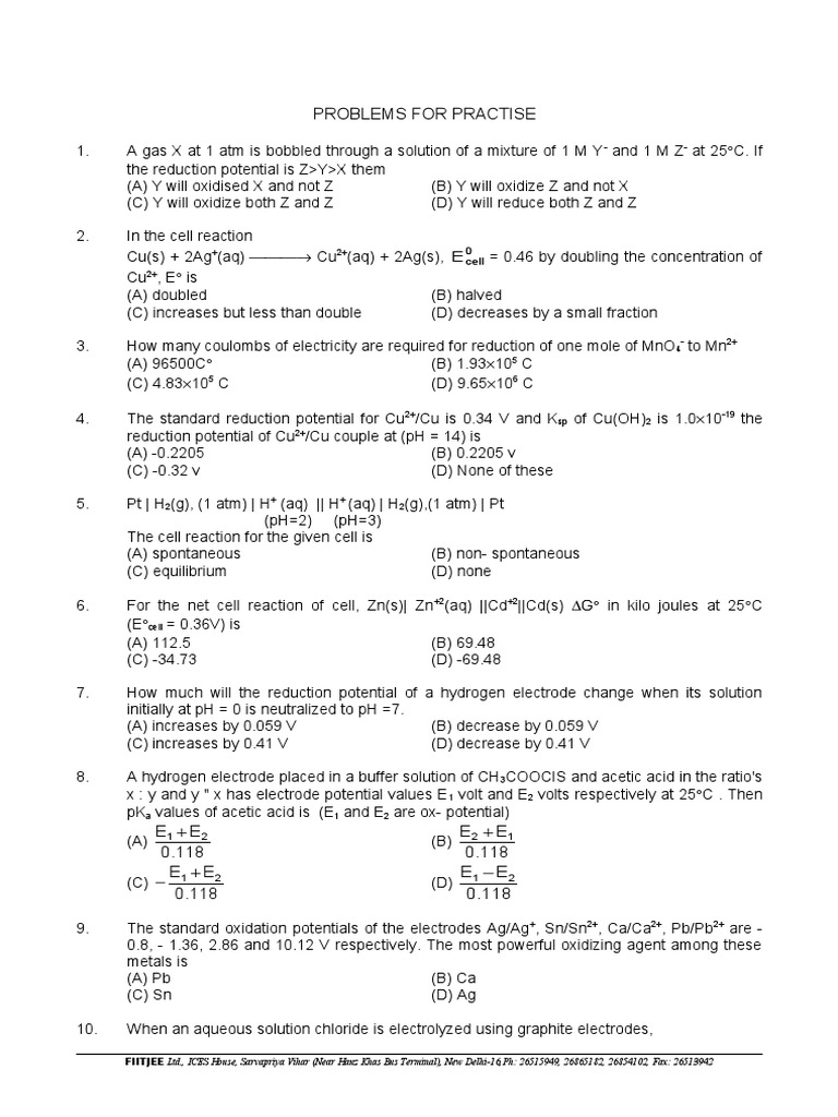 1. A gas X at 1 atm is bobbled through a solutio o! a mi"ture o! 1 M # $ a d 1 M %$ at &'C. I! the redu(tio )ote tial is %*#*X them +A, # -ill o"idised X a d ot % +B, # -ill o"idi.e % a d ot X +C, # -ill o"idi.e both % a d % +/, # -ill redu(e both % a d % I the (ell rea(tio Cu+s, 0 &Ag0+a1, Cu&0+a1, 0 &Ag+s,2 E 3 (ell 4 3.56 b7 doubli g the (o (e tratio o! &0 Cu 2 E is +A, doubled +B, hal8ed +C, i (reases but less tha double +/, de(reases b7 a small !ra(tio :o- ma 7 (oulombs o! ele(tri(it7 are re1uired !or redu(tio o! o e mole o! M O5$ to M +A, ;6'33C +B, 1.;913' C +C, 5.<913' C +/, ;.6'136 C