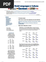 1. Compare the map illustrating the spread of Indo-European languages and the chart showing the chronological development of the languages. Give an explanation about the development of the German language by comparing the two. Languages start from a common origin, in the case of German, it is Indo-European. Find other IndoEuropean languages and identify words in those languages that are similar to German words. Look at the word Vlkerwanderungszeit and break it down into syllables. By doing so, can you pick out commonalities with some English words? 3. 4. Explain the term loanwords. Make a list of words in English that would be considered loanwords. The nineteenth and twentieth centuries saw the development of many new technologies. Make a list of some technological elds developed in the 19th and 20th centuries (i.e. electricity) and another list of words associated with the eld. Try to imagine how a word developed to express what was needed. You have read how the Nazi regime used language to convince people of the rightness of the Nazi ideol ogy. List some key components and give some examples of their use either from Nazi literature or some other political ideology. Can you relate the use of Nazi propaganda to any current manifestations of propaganda? War over the centuries has caused the loss and movement of populations as it continues to do today. The consequences are far reaching into many aspects of life, not only language. Currently we are experiencing in the world catastrophes of war. Make a list of changes war creates and how it impacts the lives of the survivors. Discuss how war can impact language. There are numerous events that have affected the development of the German language. Make a list of the inuences you have read about in the above history and give a brief explanation of the effects on the language. Make a prediction of what you think language will be like in the future. Will there be one common language? Will countries maintain their respective languages? Or will there be some variation of the two prospects and what could that be like?