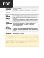Essential Question(s) / Central Focus What will be the focus of the 3-5 days instruction of which this lesson is a part? Objective(s) / Learning Targets What students will DO to demonstrate understandin ? !hin" of the re#uisite s"ills and "nowled e necessary to demonstrate mastery of the central focus? Materials $nclude all websites or lin"s to materials% Now is the time to find resources that you mi ht be able to use in the future% Engagement &ow will you en a e students' attention? What are the #uestion(s) you will as" students? Modeling What will you be doin to demonstrate what they will be doin ? What #uestions will you as"? Guided ractice What will students be doin ? What supports will you provide? What #uestions will you as" the build and chec" for understandin ? !cademic Language *an ua e +unction (What do students do to communicate their scientific "nowled e? , e% % , analy-e. e/plain. interpret. 0ustify with evidence): 1ocabulary and2or symbols introduced or reviewed in this lesson: 3ynta/ (What conventions will students use to communicate their "nowled e , e% %. order. structure. format. raph. table. lab report?): Discourse (&ow will students write or tal" about their scientific understandin ?): 3upports (What instructional supports will you use to support lan ua e function. vocabulary development. synta/ and2or discourse?): "nde#endent ractice What will students be doin on their own to demonstrate understandin ? 4e sure to include #uestions you will as" 2 and or what you hope to hear students sayin or writin % !ssessment What will students DO to demonstrate understandin ? &ow will you formatively assess where students are to direct your future instruction? &ow will this lesson fit in your summative assessment