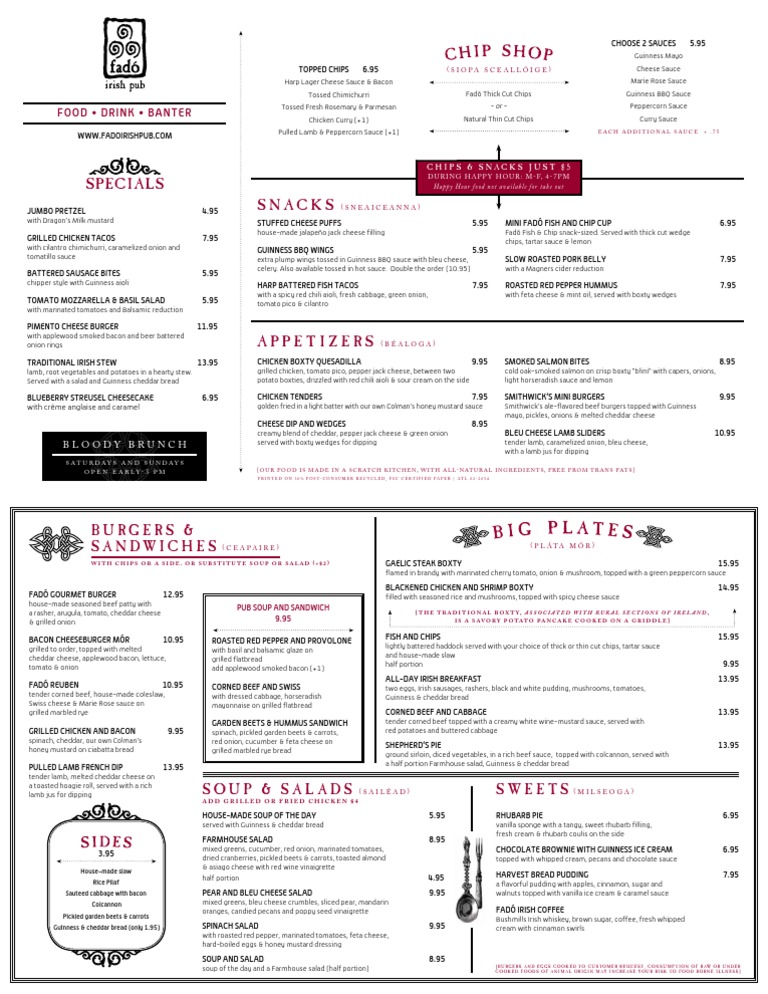 House-made slaw Rice Pilaf Sauteed cabbage with bacon Colcannon Pickled garden beets & carrots Guinness & cheddar bread (only 1.95)