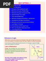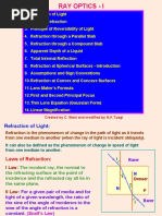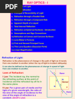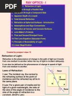 1. Refraction of Light 2. Laws of Refraction 3. Principle of Re ersi!ilit" of Light #. Refraction thro$gh a Parallel Sla! %. Refraction thro$gh a Co&po$n' Sla! (. Apparent )epth of a Li*$i' +. Total Internal Reflection ,. Refraction at Spherical S$rfaces - Intro'$ction -. Ass$&ptions an' Sign Con entions 1.. Refraction at Con e/ an' Conca e S$rfaces 11. Lens 0a1er2s 3or&$la 12. 3irst an' Secon' Principal 3oc$s 13. Thin Lens 4*$ation 56a$ssian 3or&7 1#. Linear 0agnification