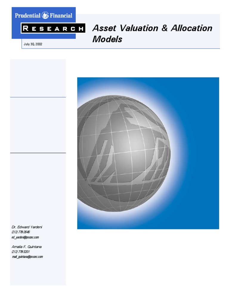 http://www.federalreserve.gov/boarddocs/speeches/1996/19961205.htm We have not been able, as yet, to provide a satisfying answer to this question, but there are reasons in the current environment to keep this question on the table. http://www.federalreserve.gov/boarddocs/hh/1997/february/testimony.htm 3 http://www.federalreserve.gov/boarddocs/hh/1997/july/ReportSection2.htm Page 2 / July 30, 2002 / Prudential Securities Asset Valuation & Allocation Models