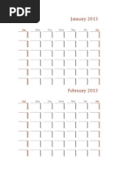 January 2013: Sunday Monday Tuesday Wednesday Thursday Friday Saturday