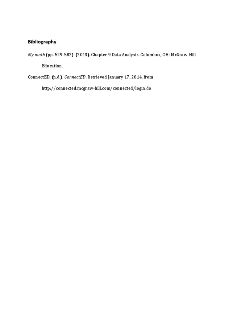 My math (pp. 529-582). (2013). Chapter 9 Data Analysis. Columbus, OH: McGraw-Hill Education. ConnectED. (n.d.). ConnectED. Retrieved January 17, 2014, from [Link]