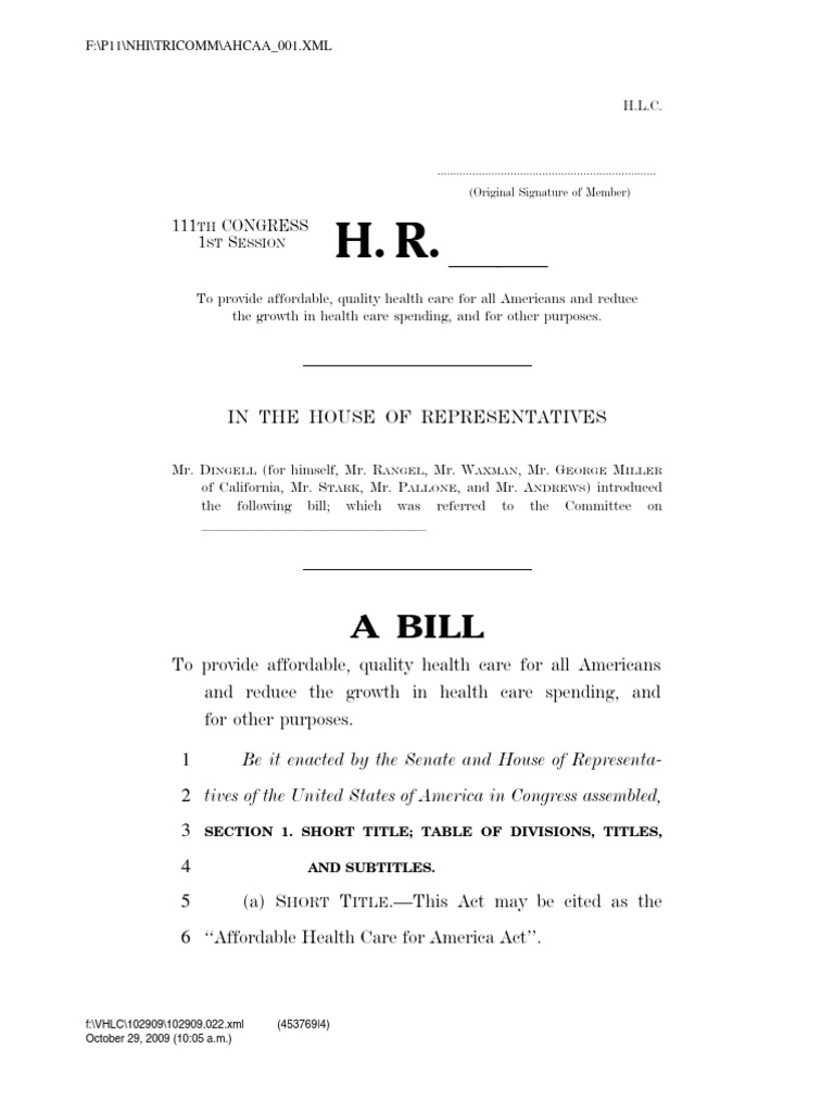 To provide affordable, quality health care for all Americans and reduce the growth in health care spending, and for other purposes.
