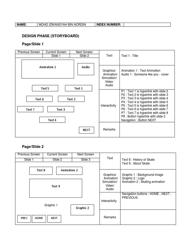DESIGN PHASE (STORYBOARD) Page/Slide 1