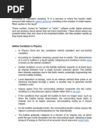 Boiling occurs when enough energy is added to a system for a vapor pocket to overcome surface tension in a liquid Cavitation occurs when local pressure falls below vapor saturation pressure Similar to ONB Using the Clausius-Clapeyron equation it is possible to predict a pressure threshold