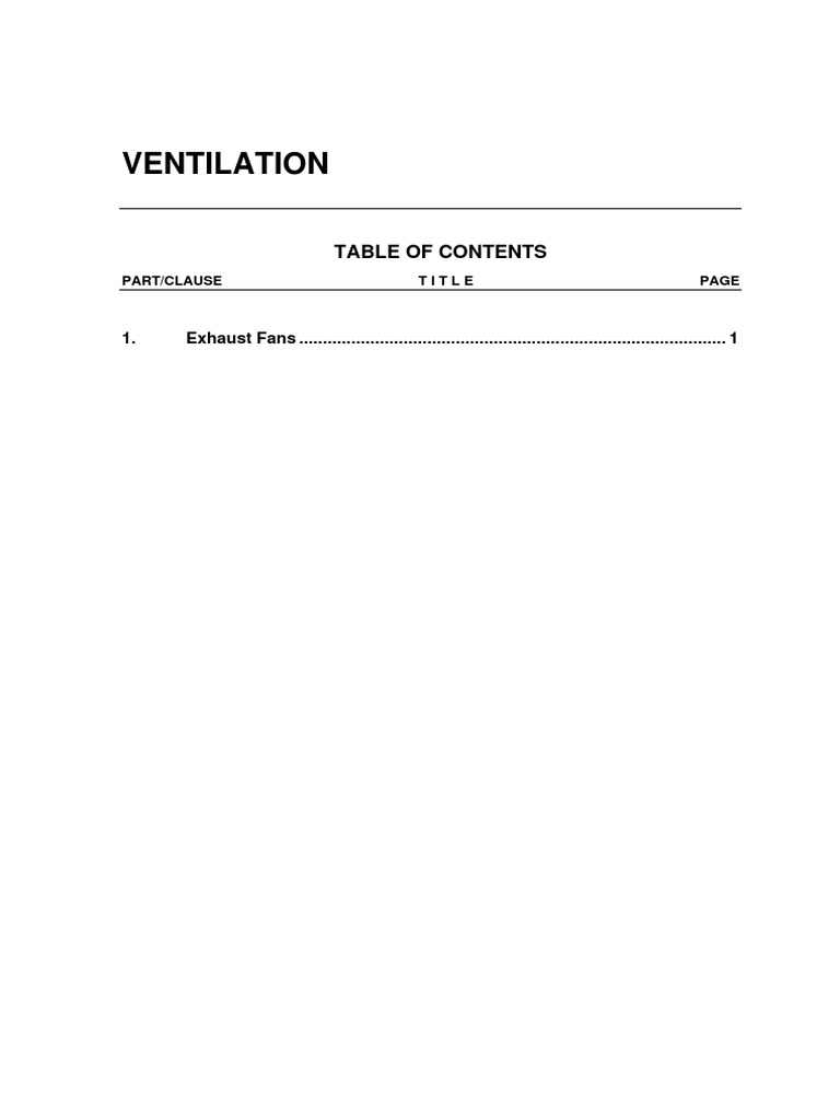 EXHAUST FANS General Exhaust fans shall be supplied and installed by the Contractor as shown on the drawings. Capacity, type and rating of the fans shall be as indicated in the schedule. The fan motors and switches shall be in accordance with this specification regarding electrical works. Fixing details shall be in accordance with manufacturers recommendations. Roof Extract Fans Single (Toilets) The fan unit shall comprise of a fan assembly complete with motors and drives mounted on a heavy duty unit base plate by anti-vibration mountings. The fans shall be direct/belt driven with double inlet forward curved centrifugal impellers running on two life-long lubricated bearings. The fan unit shall be fitted with gravity shutters to prevent air blow back when not in use. The fan unit electric motors shall be manufactured in accordance with BS 5000 and be of the shaded pole or capacitor start and run type suitable for an electrical supply of 240 volts, single phase, 50 Hz and capable of operating in ambient conditions as described earlier. The fan unit shall be prewired with switches and isolators to a single terminal box on the casing. The unit casing shall be constructed from aluminum alloy with centrally positioned inlet spigot and access panel to allow ease of service.