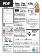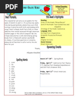 Homework: Please continue working on the April homework calendar. Please let me know if you have any questions.