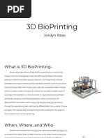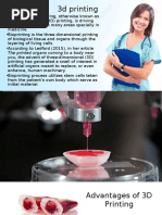 While ! printing is still on the up an" coming #ith the general public$ it has pro%en to be %ery use&ul in me"ical &iel"s' (or this pro)ect$ I #ill be e*ploring the ne# uses o& ! printing in the me"ical #orl"' (rom replacing #hole parts o& the bo"y such as ears$ noses an" &ingers to helping patients recei%ing a skin gra&t$ "octors are #orking on #ays to make these nee"e" parts using ! printers' !octors use a bio"egra"able &abric in&use" #ith actual cells &rom the host$ ma"e by arti&icially gro#ing them in a laboratory' +ony ,tala$ "irector o& the Wake (orest Institute &or -egenerati%e Me"icine seems to be the most inter%ie#e" person #hen "ealing #ith this topic' +hrough his research$ they ha%e ma"e all types o& &unctionable organs e*cept &or ma)or$ har" organs such as hearts$ lungs an" ki"neys' While not &unctional$ the har" organs that they ha%e been able to make ha%e been use" to test the si"e e&&ects o& certain "rugs on these organs' !uring my research$ a lot o& #ebsites an" sho#s co%ere" the uses o& ! printing' I #as able to &in" stories on sites like .u&&ington post$ +E! talks$ (o* ne#s an" the national )ournal' /outube ha" a huge selection o& %i"eos to #atch on this topic as #ell' I also talke" to my &rien"s an" parents about the topic to see i& they ha" hear" any &urther in&ormation on this topic'
