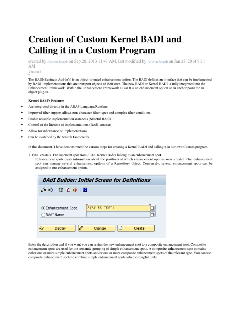 Creation of Custom Kernel BADI and