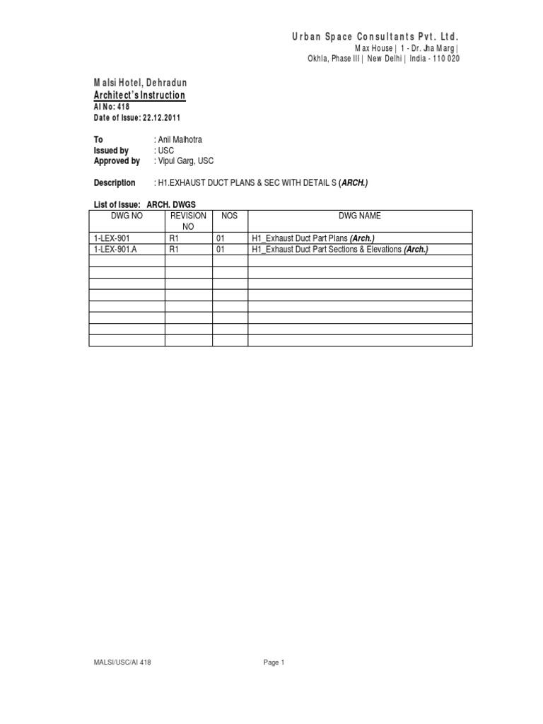 1-LEX-901 R1 01 H1_Exhaust Duct Part Plans (Arch.)
