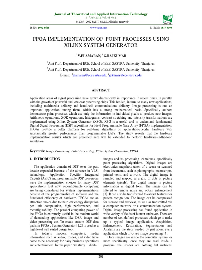 implemented using Xilinx System Generator (XSG). XSG is a useful tool to understand fundamental