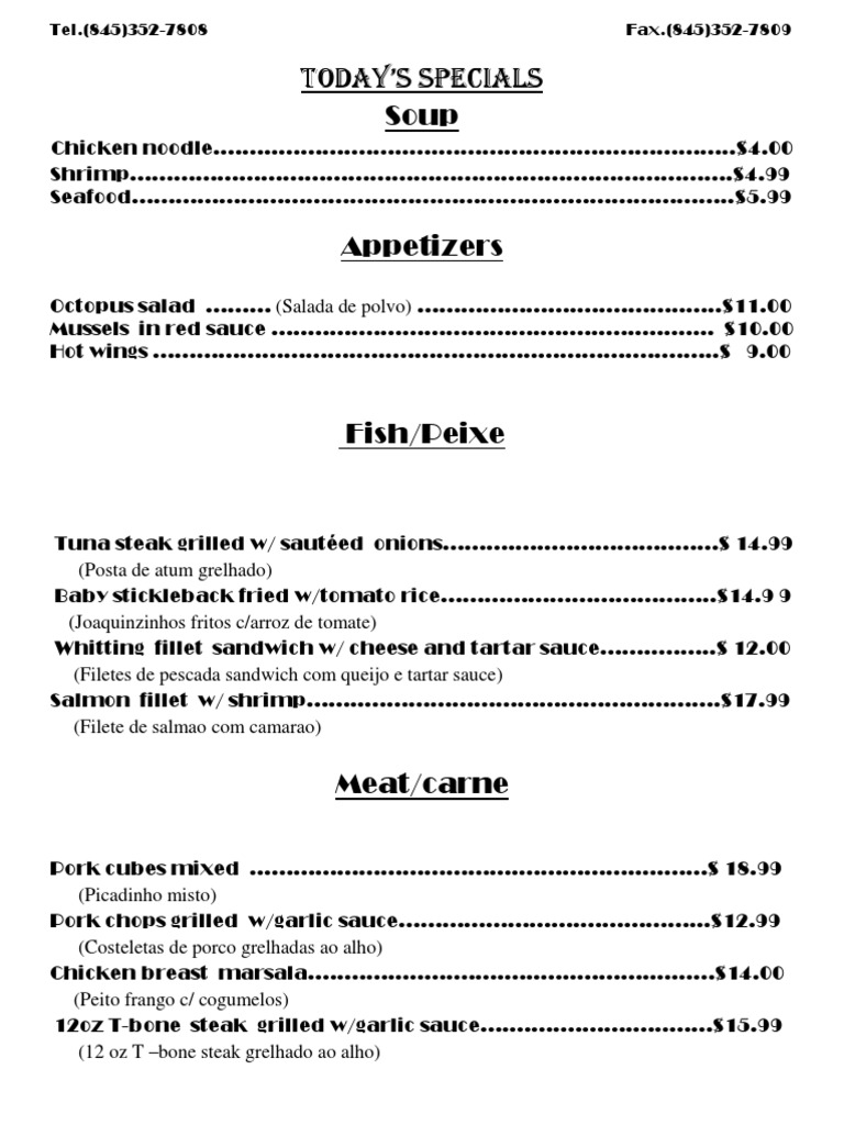 12oz T-bone steak grilled w/garlic sauce.....$15.99
