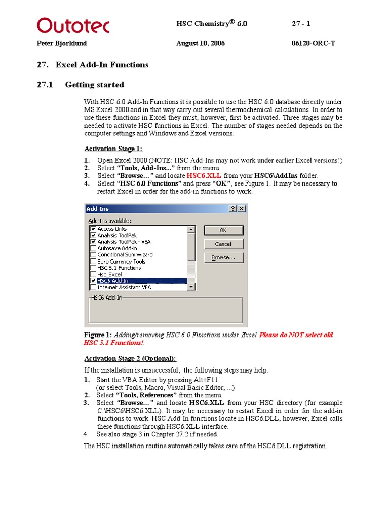 (igure 1, Adding/removing HSC 6.0 Functions under Excel Please do NOT select old