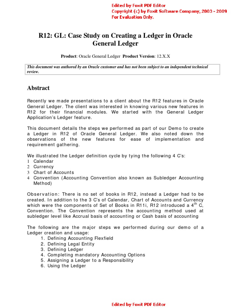 R12: GL: Case Study on Creating a Ledger in Oracle