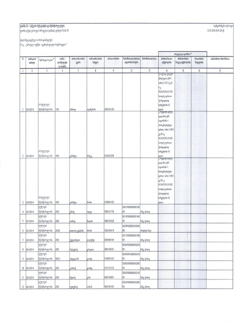 საწევრო შენატანები და შემოწირულობები 10.05.2014-30.05.2014