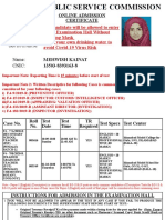 1. The Candidate must bring the Admit Card and produce it before the Invigilators on duty to enter the Hall.