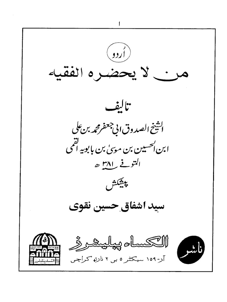 Save Sheikh Sadooq - Man La Yazhar-ul- Faqih - Volume I... For Later