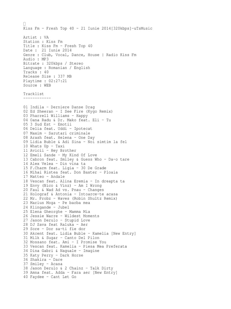Kiss Fm - Fresh Top 40 - 21 Iunie 2014[320kbps]-uTsMusic