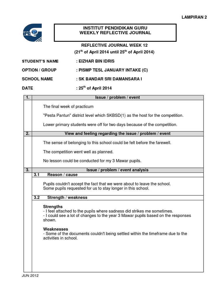 WEEKLY REFLECTIVE JOURNAL