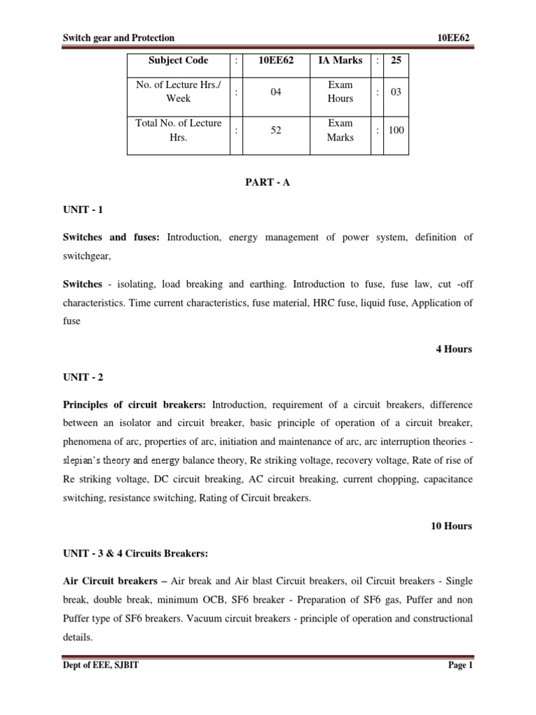Switch gear and Protection 10EE62
