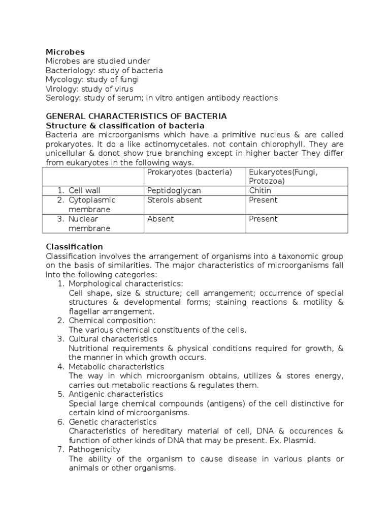 on the basis of similarities. !he ma2or characteristics of microorganisms fall