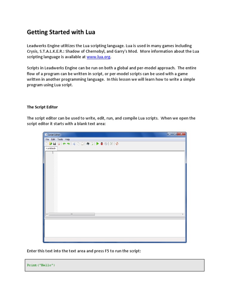 Crysis, S.T.A.L.K.E.R.: Shadow of Chernobyl, and Garry's Mod. More information about the Lua