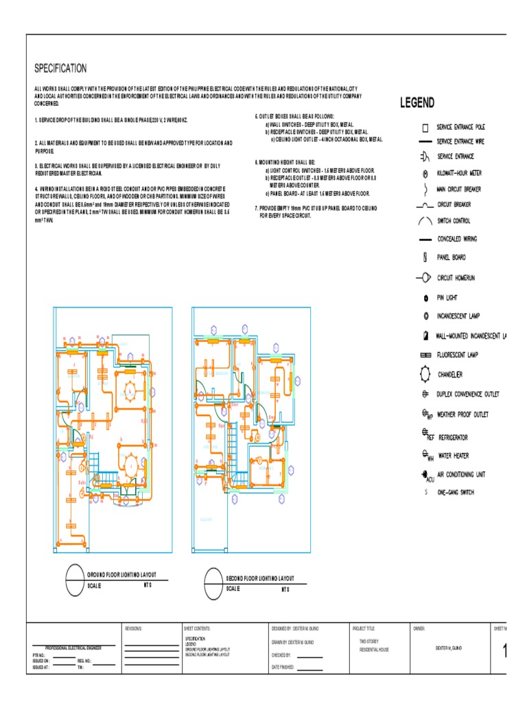 ALL WORKS SHALL COMPLY WITH THE PROVISION OF THE LATEST EDITION OF THE PHILIPPINE ELECTRICAL CODE WITH THE RULES AND REGULATIONS OF THE NATIONAL,CITY