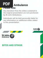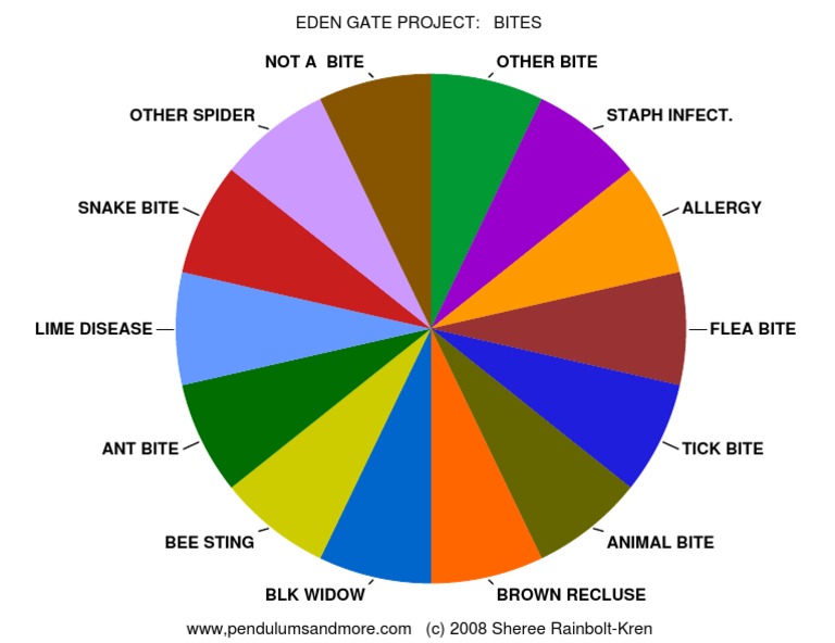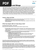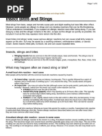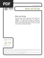 This document appears to be a chart listing different types of bites and stings from insects, arachnids, and animals. It includes categories such as spider bites, snake bites, tick bites, ant bites, bee stings, and animal bites. Specific types noted are black widow, brown recluse, and lime disease.